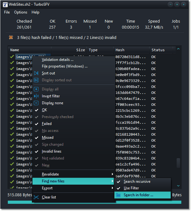 Files which were added since the creation of the hash file are tagged as new. |